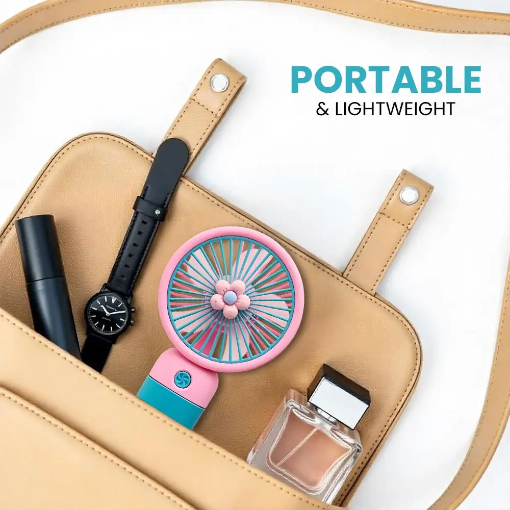 Fun & Stylish Flower Design – Stay cool with this adorable handheld fan featuring a playful flower design! Available in four vibrant color combinations—Yellow-Dark Green, Light Green-Yellow, Pink-Sea Green, and Purple-Pink—it adds a fresh and cheerful touch to your day. The fan’s base also doubles as a mobile holder for added convenience.